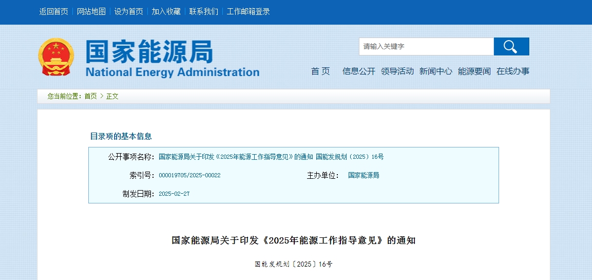 国家能源局关于印发《2025年能源工作指导意见》的通知