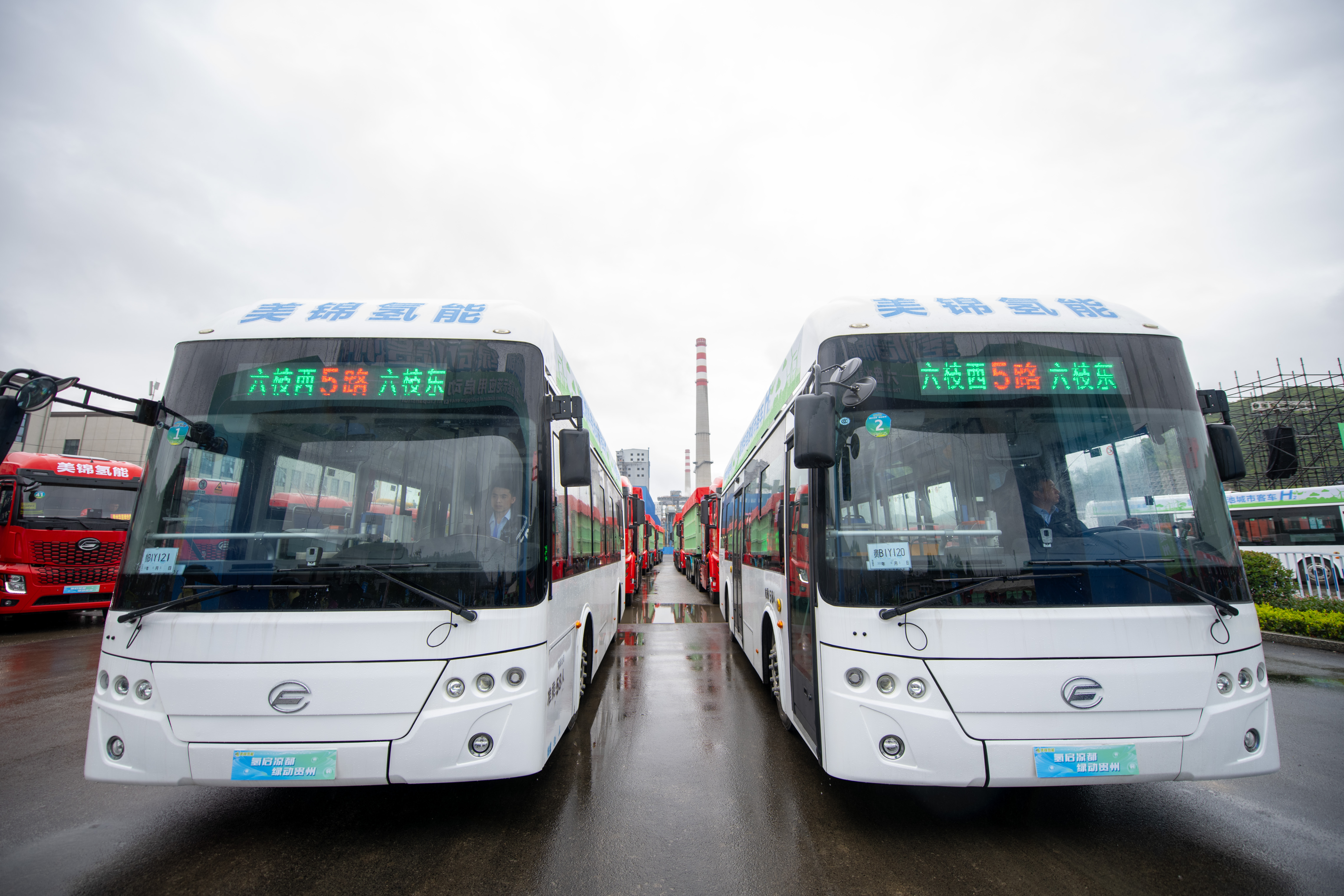 5月10日,在六盘水市六枝特区,49吨级氢能重卡正式投运和8.6米氢燃料电池公交车正式投运。