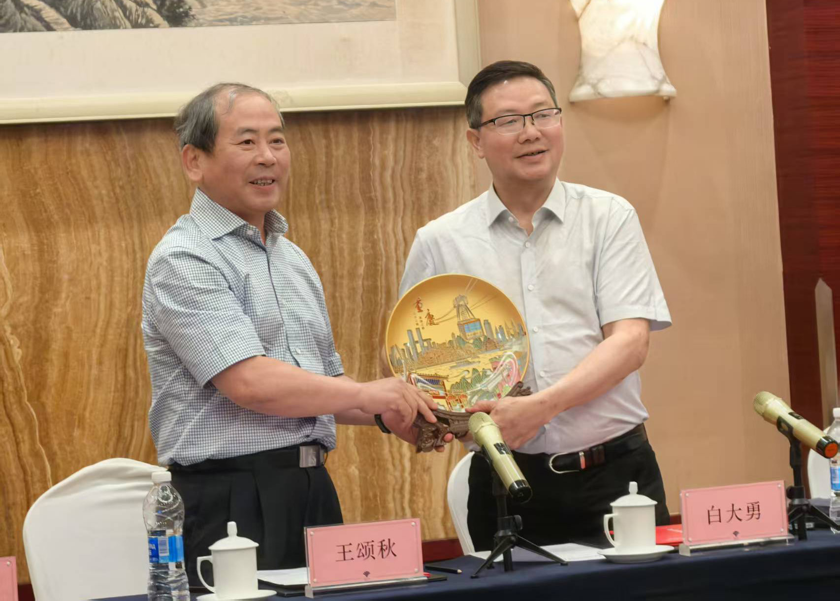 王颂秋理事长向白大勇理事长赠送纪念品
