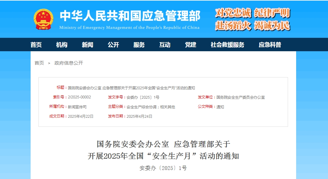 今年6月是第24个全国“安全生产月”,主题是“人人讲安全、个个会应急——查找身边安全隐患”,6月16日为全国“安全宣传咨询日”。为组织做好2025年全国“安全生产月”各项工作,现就有关事项通知如下: