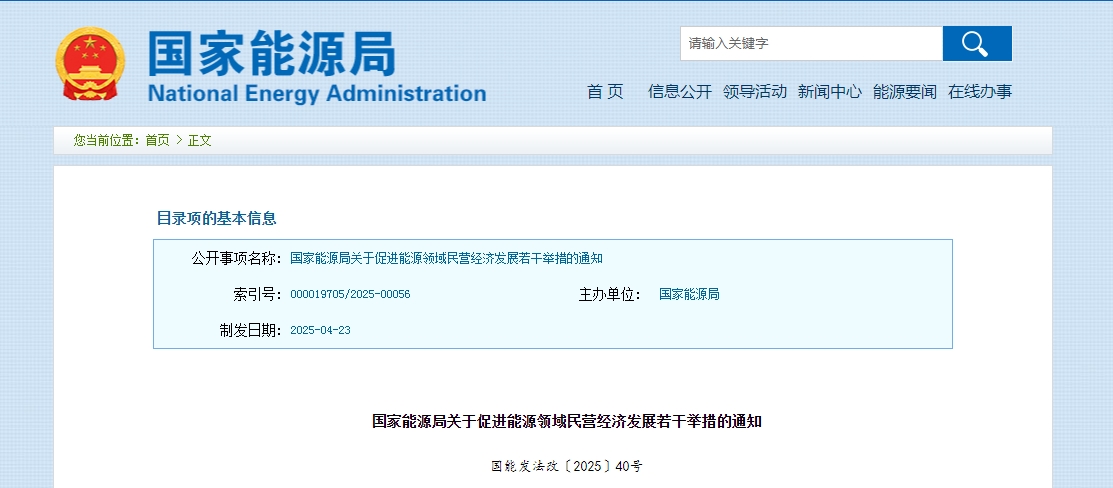 国家能源局关于促进能源领域民营经济发展若干举措的通知