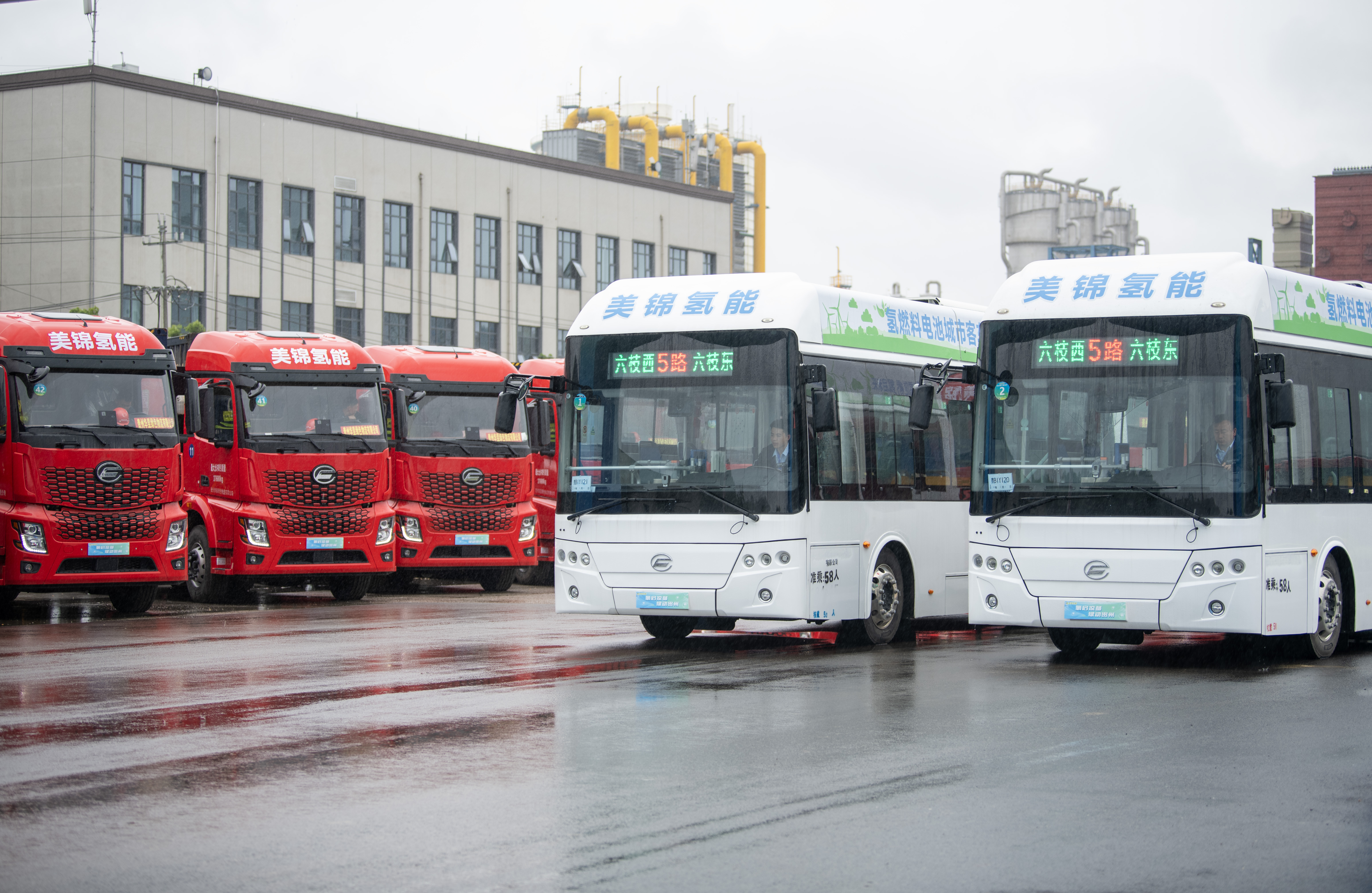 5月10日,在六盘水市六枝特区,49吨级氢能重卡正式投运和8.6米氢燃料电池公交车正式投运。
