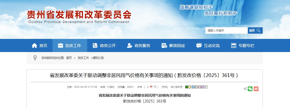 各市(州)发展改革委,贵州燃气集团股份有限公司: