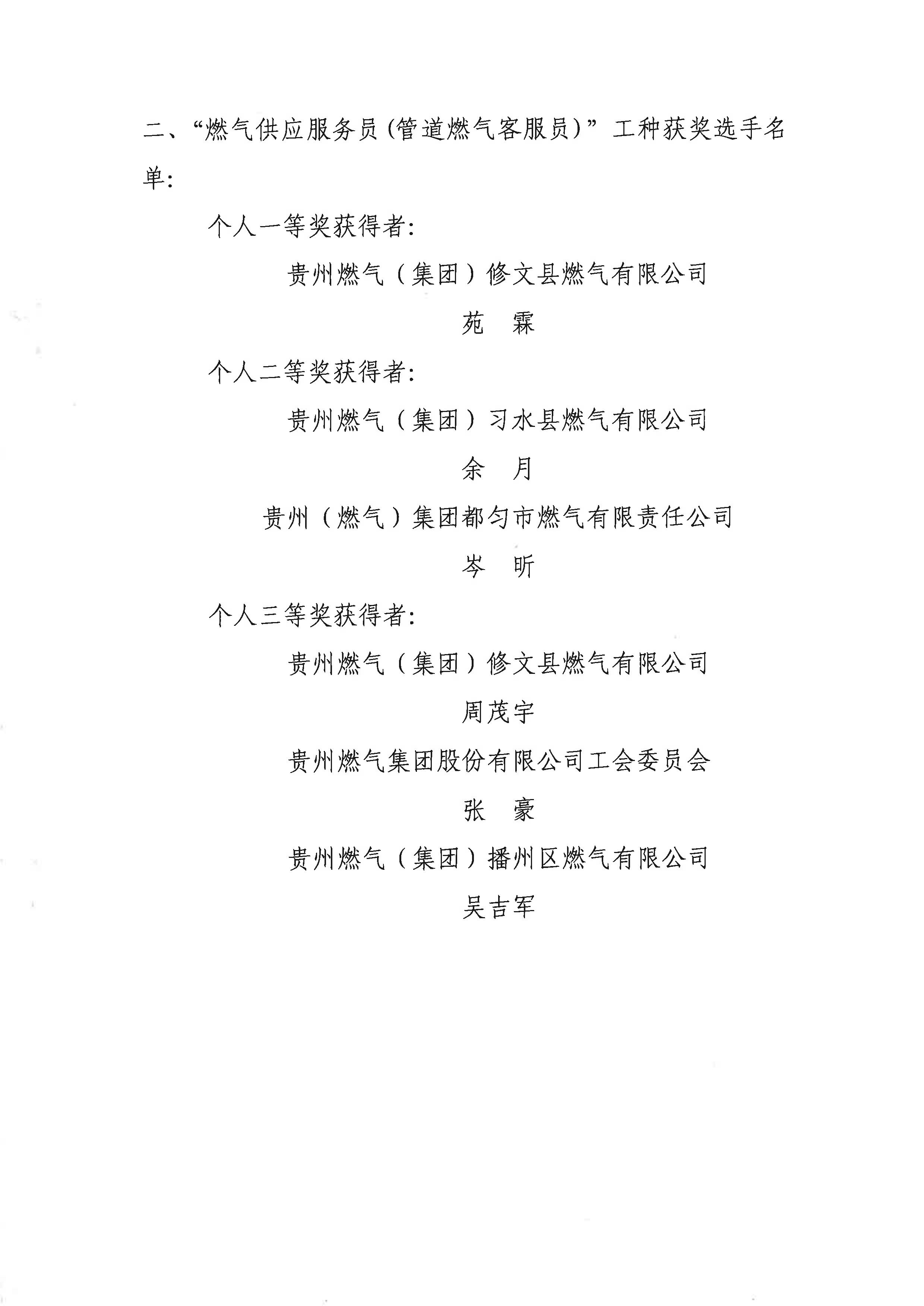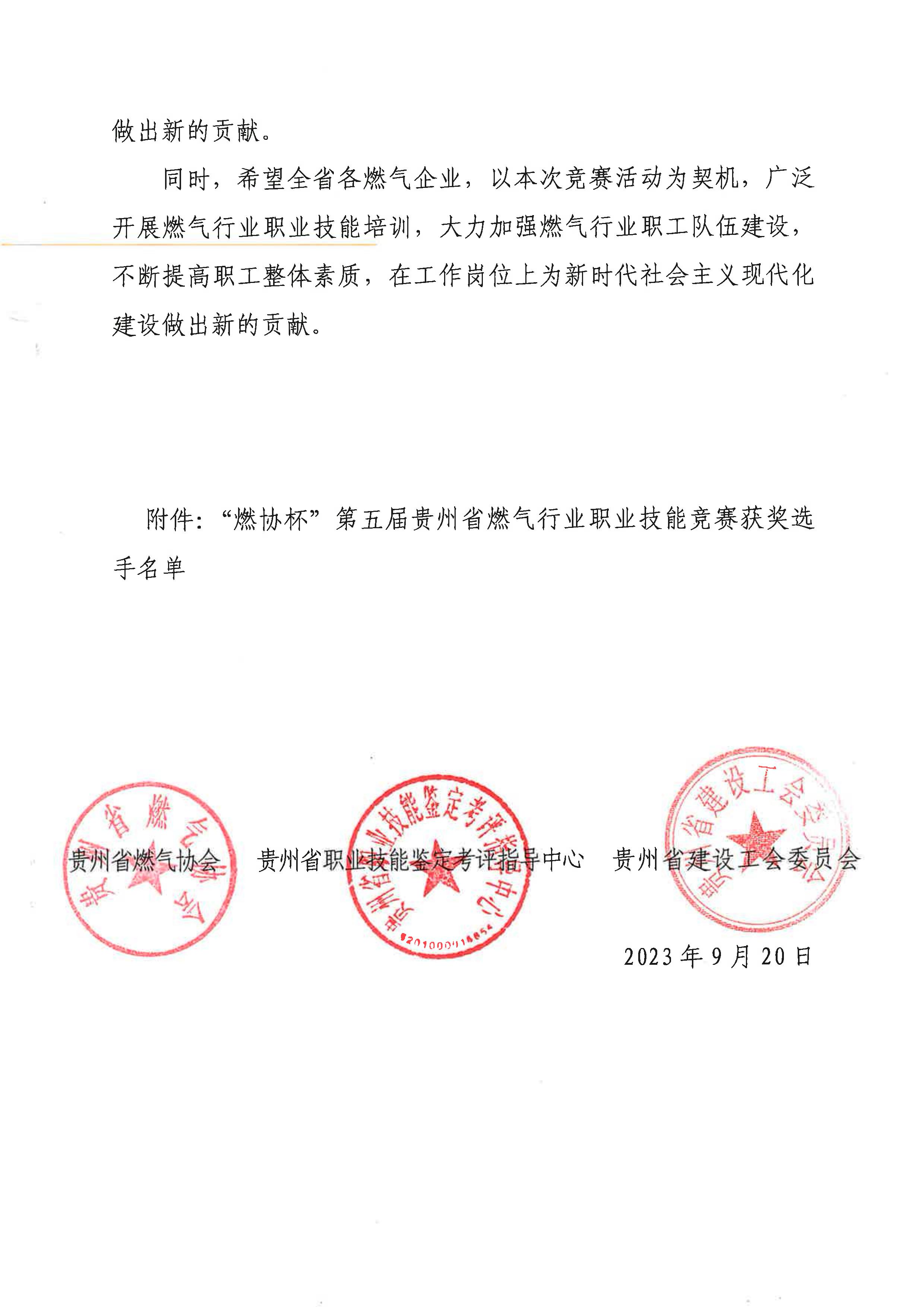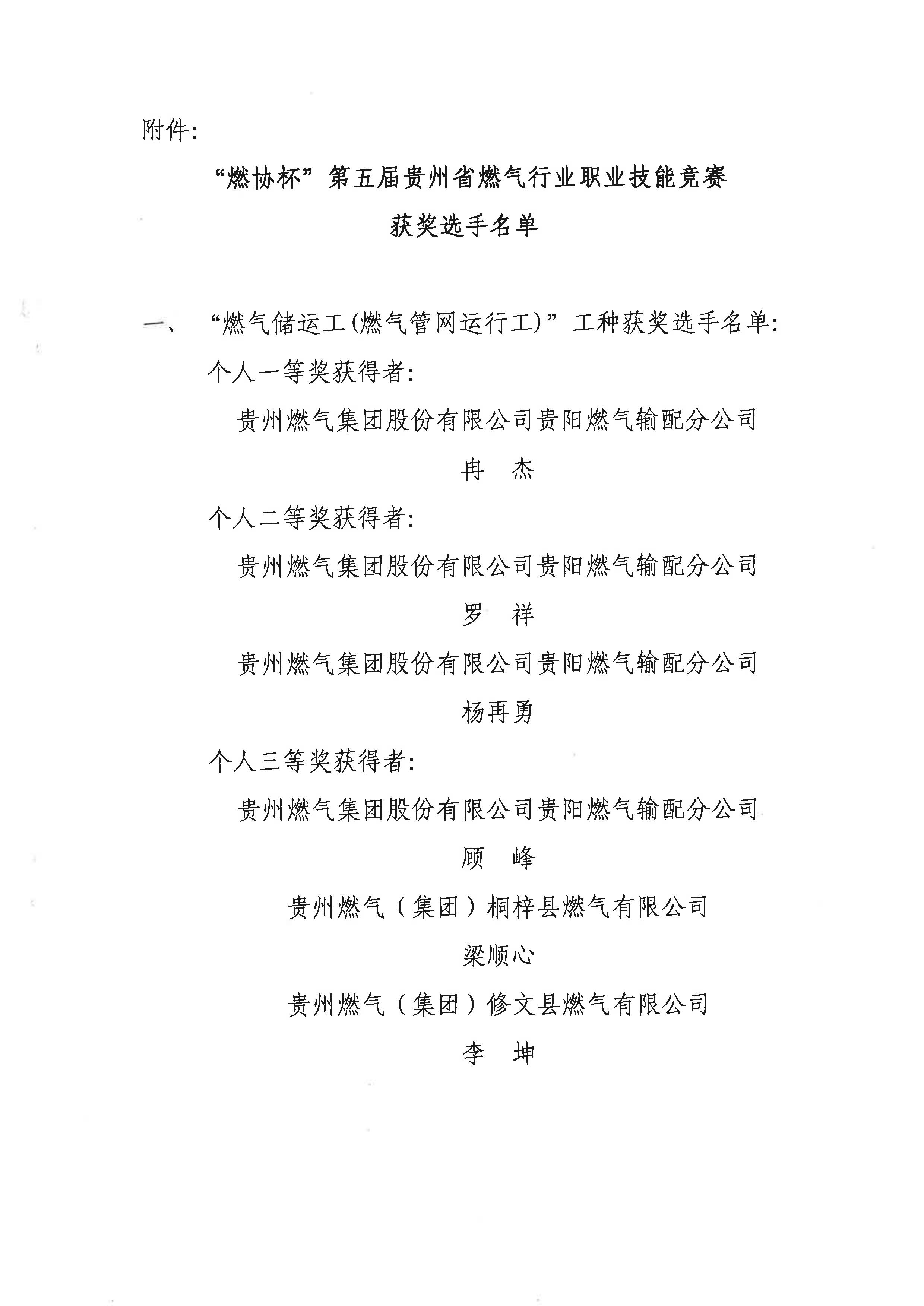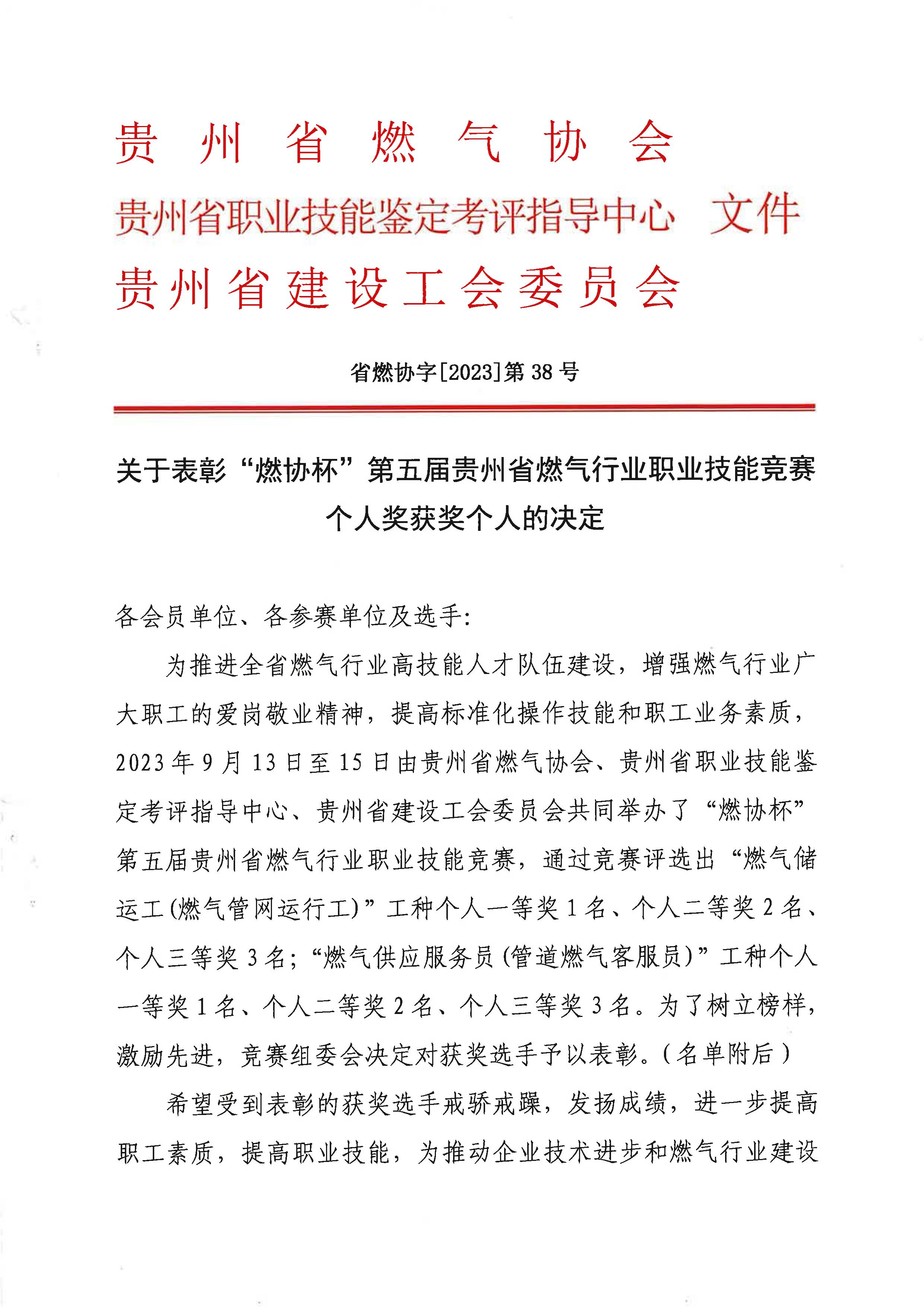 关于表彰“燃协杯”第五届贵州省燃气行业职业技能竞赛 个人奖获奖个人的决定