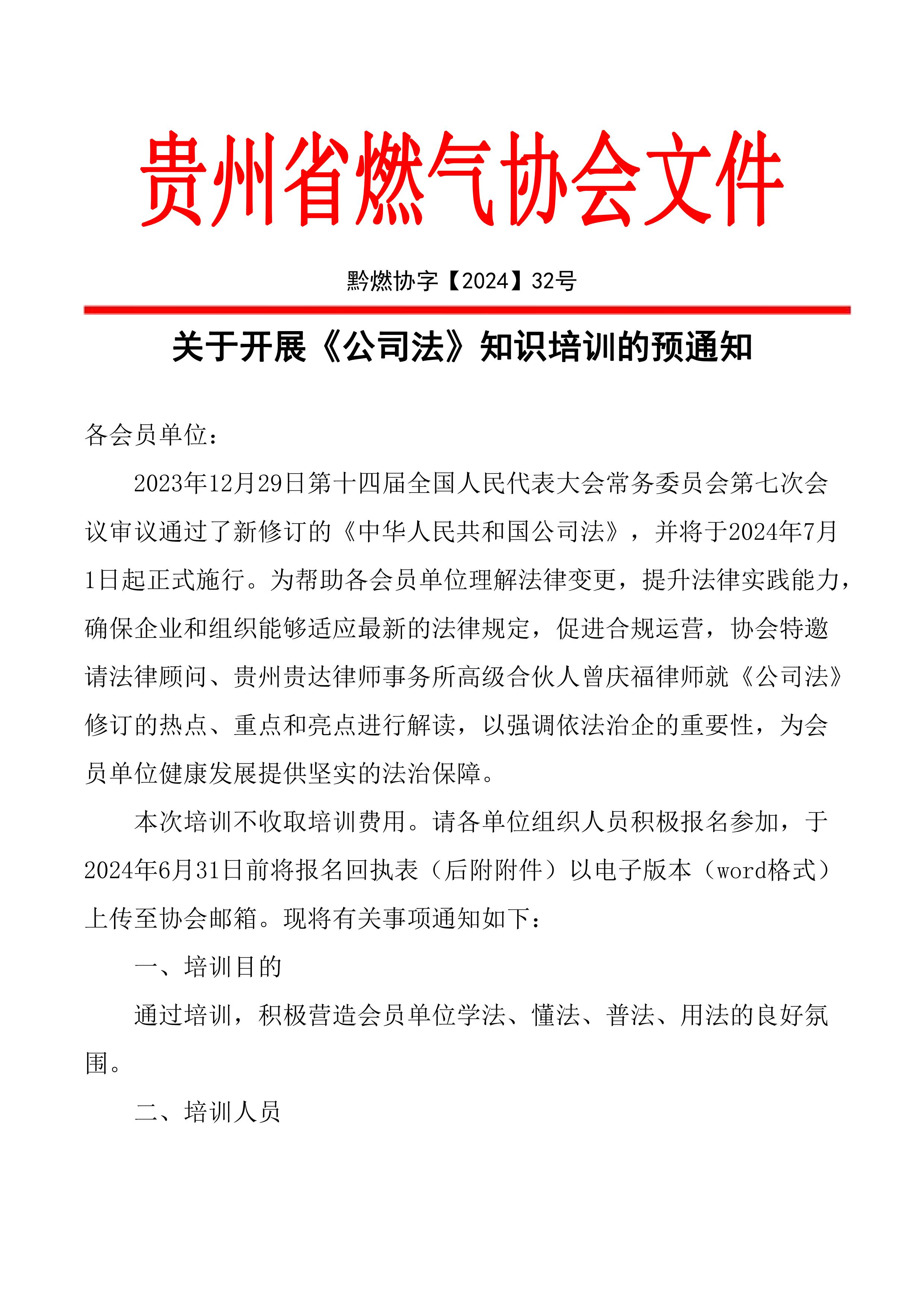关于开展《公司法》知识培训的预通知